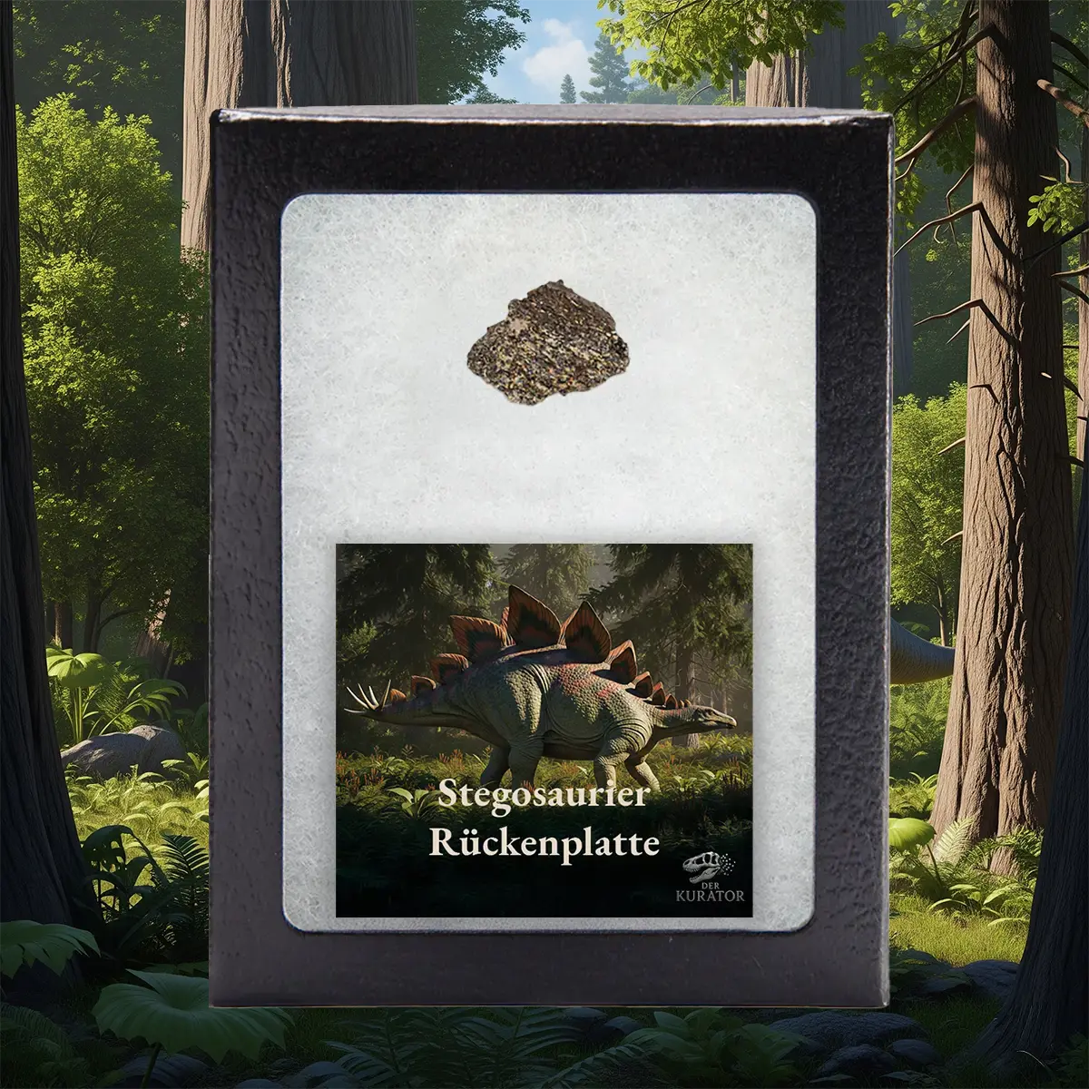 Das hier angebotene Fossil stammt aus einer echten Rückenplatte des Stegosaurus: ein kleines, aber kräftiges Fragment dieser friedlichen Echse, geborgen aus den berühmten Fundstätten der USA. Es bringt ein Stück Urzeit-Natur direkt in deine Hände. Präsentiert in einer eleganten Box mit Glasabdeckung und einer Infokarte mit Herkunftsnachweis, eignet es sich ideal für alle, die sich der natürlichen Schönheit, der Erdverbundenheit und der gutmütigen Kraft der Pflanzenfresser verbunden fühlen. Dieses Fossil erinnert uns: Auch in einer wilden Welt kann Sanftmut über Stärke triumphieren.